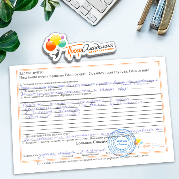 Обучение прошло не отрываясь от рабочего места и во время рабочего дня. Много себе в работу взяли материала по программе, который необходим для нашей организации; обучение позволило сэкономить время, нервы руководителя, скачать плакаты и получить документы об обучении государственного образца.