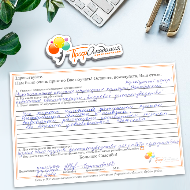 Обучение на курсе повышения квалификации по кадровому делопроизводству